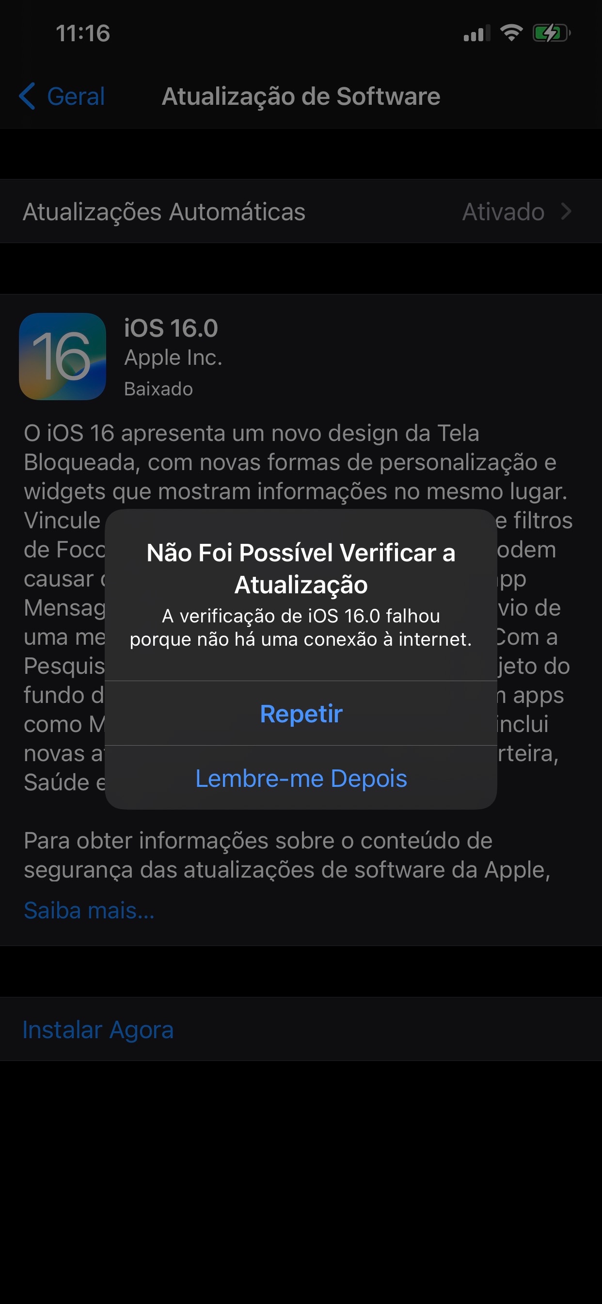 Não consigo atualizar o iPhone