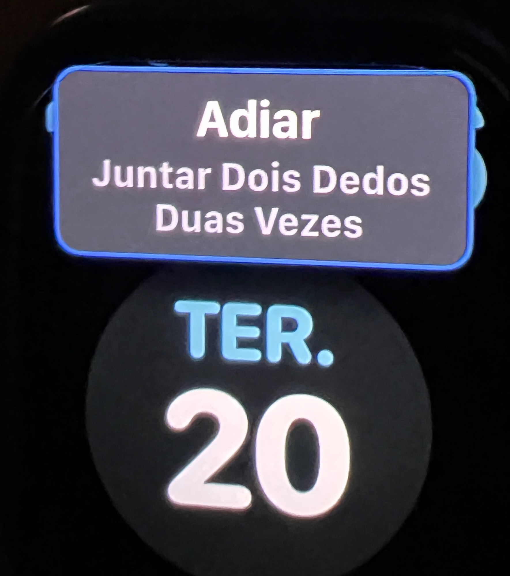 quero desativar esta informação no meu Watch = adiar juntar dois dedos duas vezes, pois sempre aparece em cima de dados necessários principalmente quando estou na academia e não quero ficar sempre olhando para o mostrador do relógio.