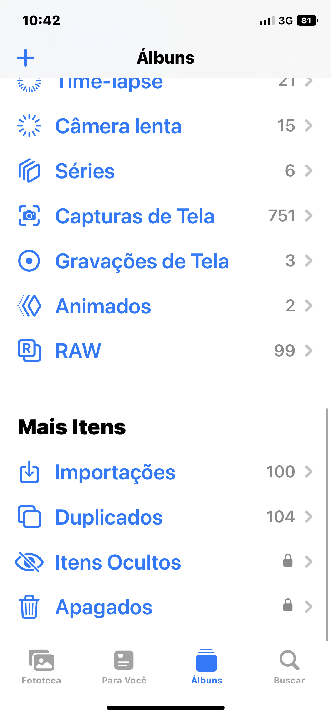 Atualizei iPhone X iOS 16.02 e o álbum pasta duplicadas não aparece