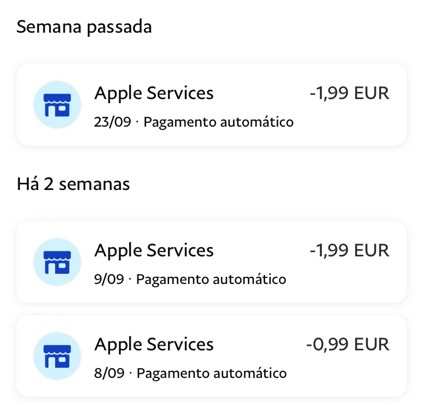 Fiz upgrade para o iCloud estou a ser cobrado duas vezes um valor de 1,99€ e outro de 0,99€