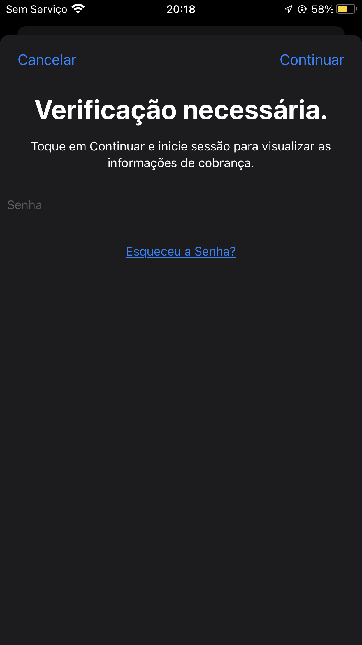 Toda vez que eu tento baixar novamente um App da nuvem, ele pede uma verificação, eu ponho a senha e ele leva para a aba dos cartões, e não consigo prosseguir.