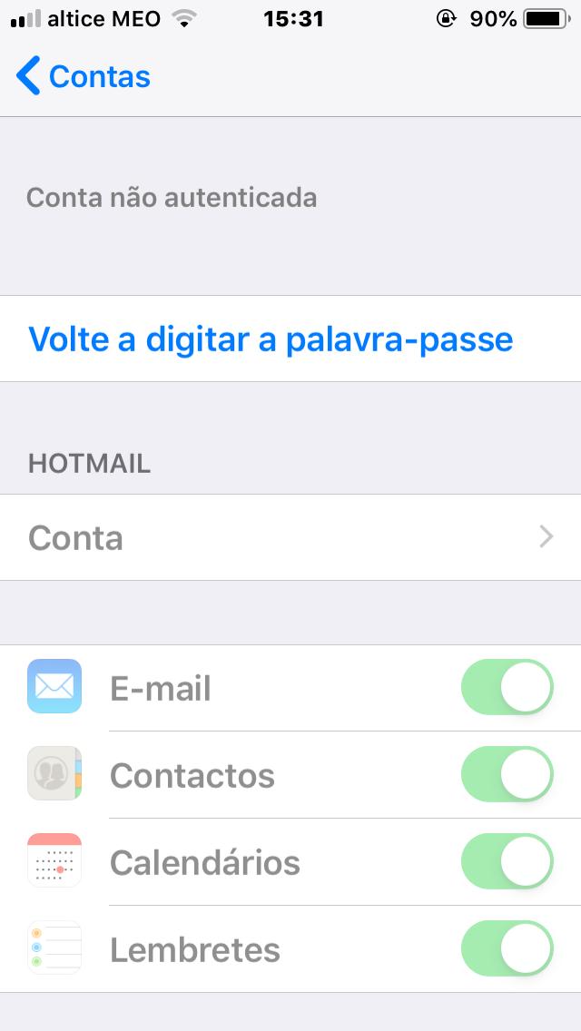 Mail não sincroniza com email Outlook no iPhone