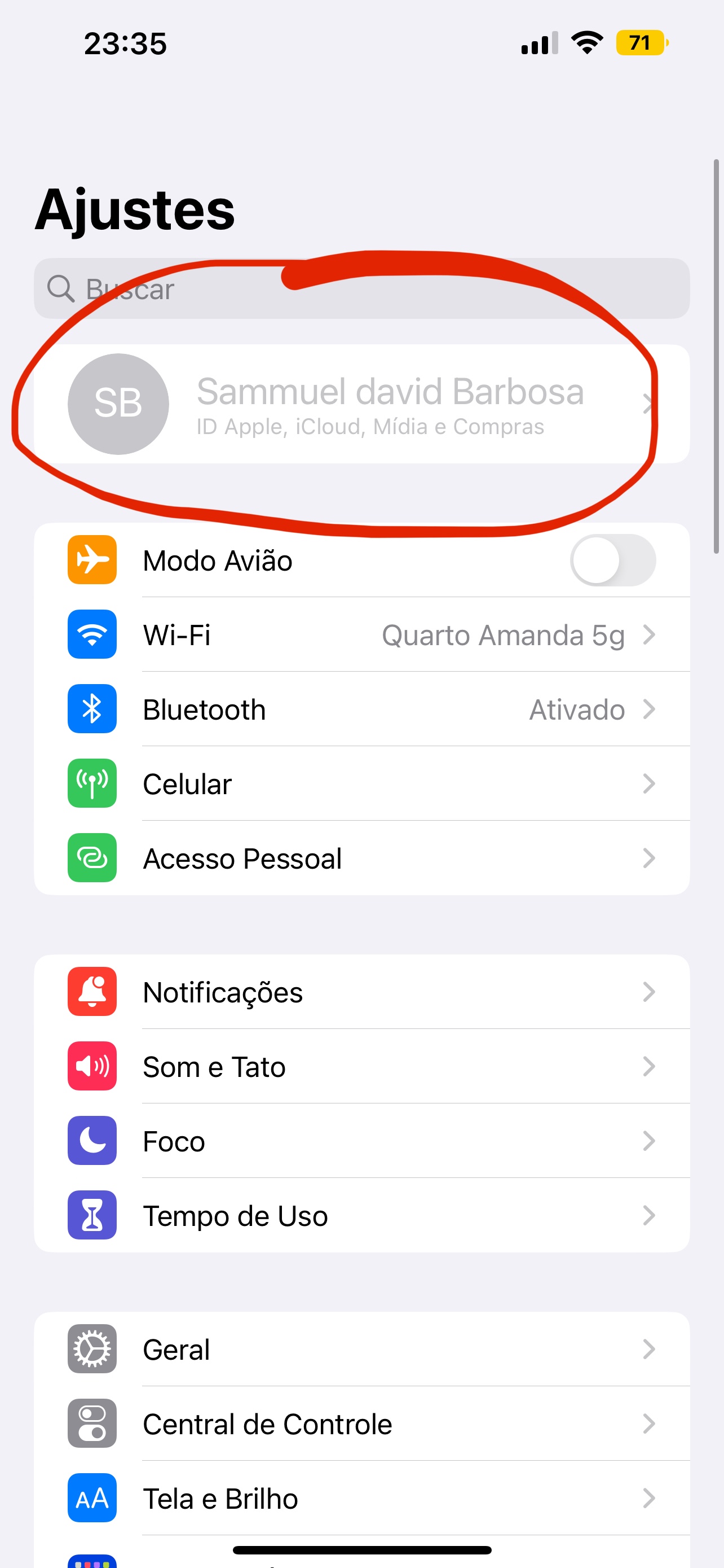 Meu iCloud não está funcionando. Vou em ajustes e o item não funciona. Não está azul.