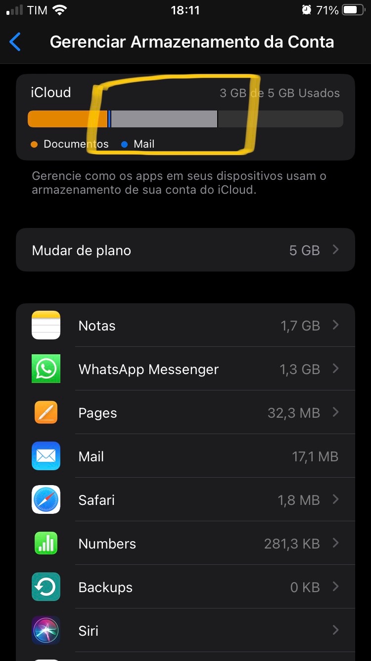Olá comunidade Apple queria saber o significa essa parte em em cinza, ocupando espaço no meu ICloud, e como eliminar corretamente para ter mais espaço!!!