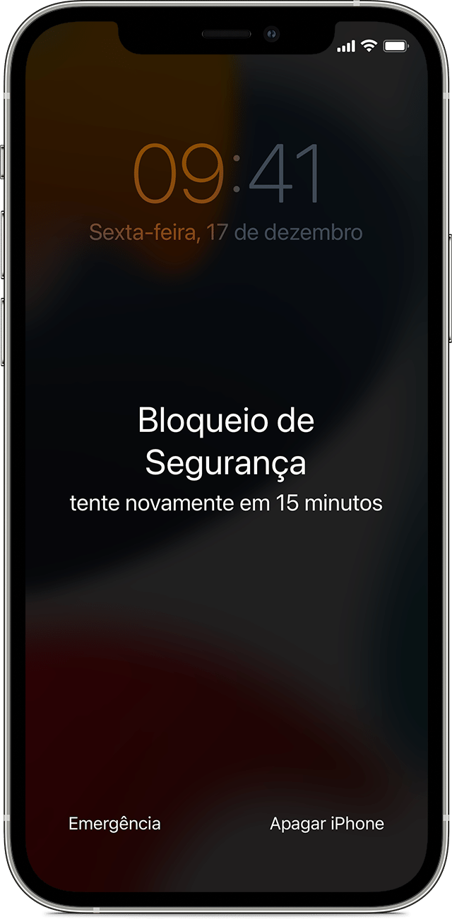 Se esqueceu o código de acesso, você pode usar o ID Apple e a senha para apagar e redefinir o dispositivo.