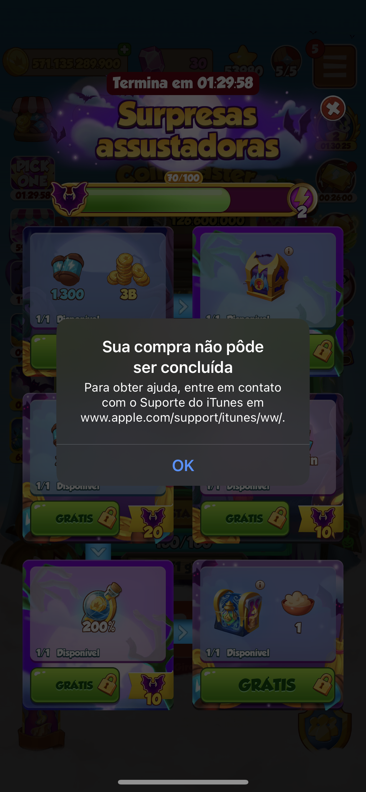 Não estou conseguindo efetuar uma comprar, está apontado problema nó App