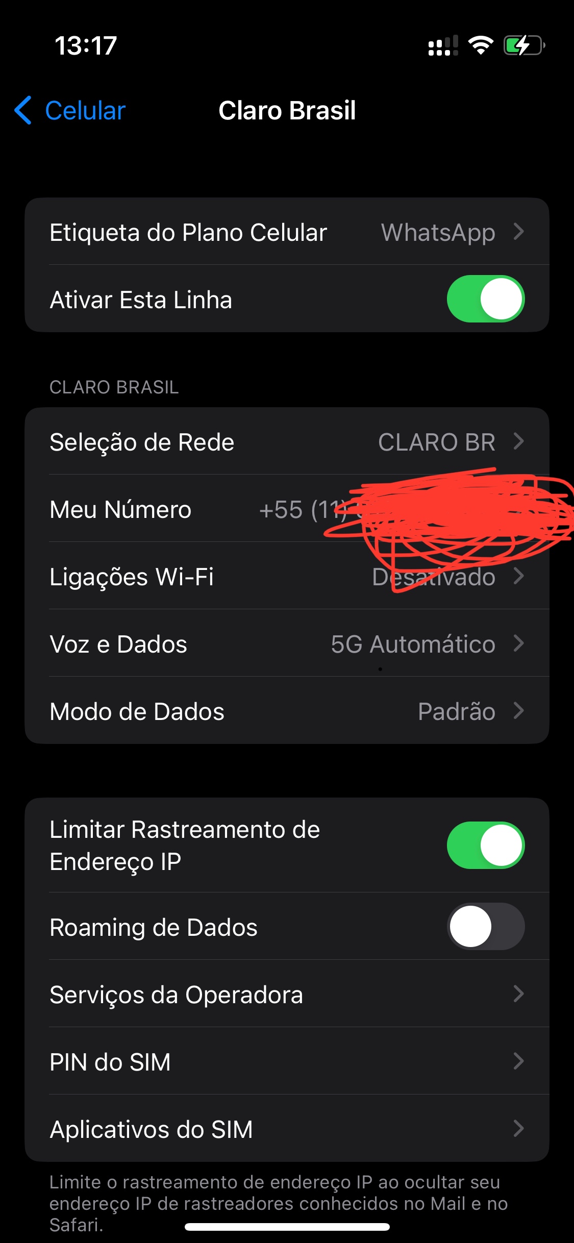 Colocar 02111 antes do número no iPhone 14 após e- SIM