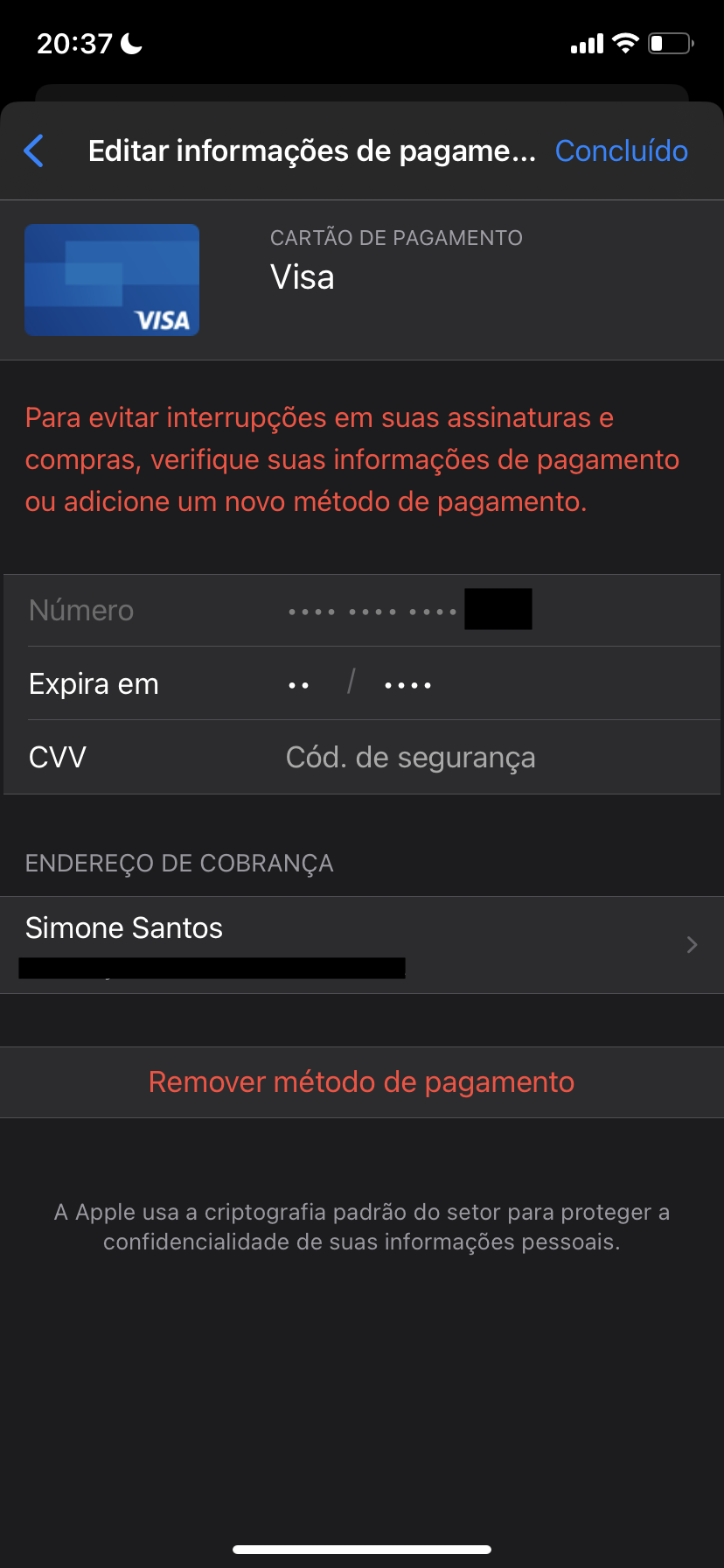 - Caso seu cartão tenha sido recusado, adicione uma nova forma de pagamento ou atualize suas informações de pagamento. Você pode adicionar várias formas de pagamento ao ID Apple.