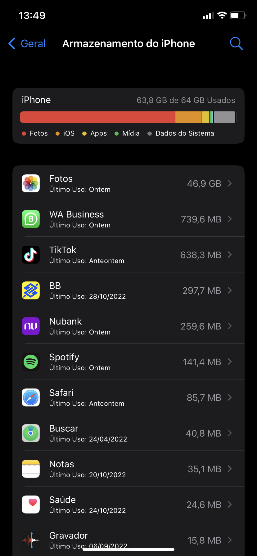 Verificar o armazenamento do dispositivo no iPhone ou iPad