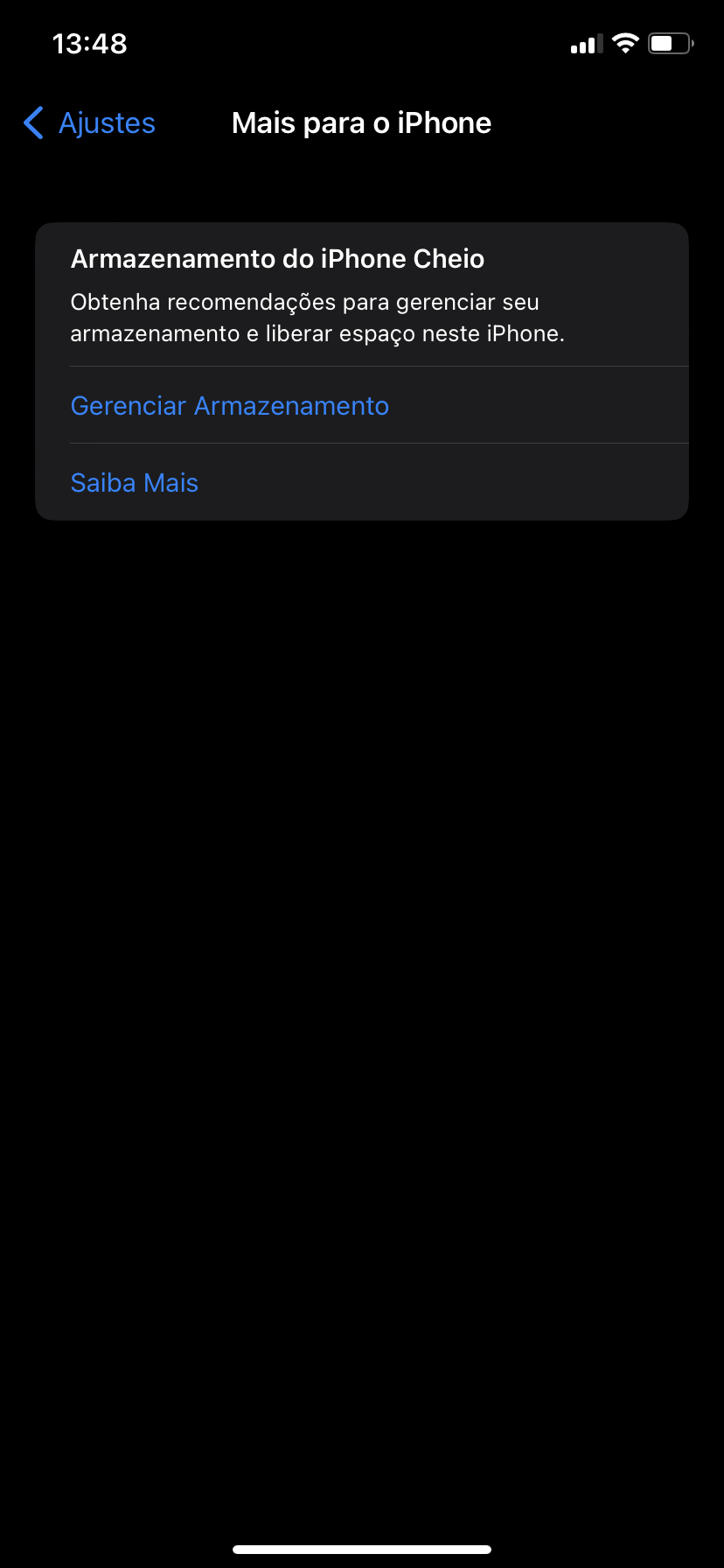 Um dispositivo Apple, como um iPhone, iPad ou Mac, vem com uma quantidade definida de armazenamento. Quanto mais armazenamento o dispositivo tiver, mais músicas, apps, fotos e outros materiais você poderá armazenar nele. Se o armazenamento do dispositivo estiver quase cheio ou cheio, você receberá um alerta.