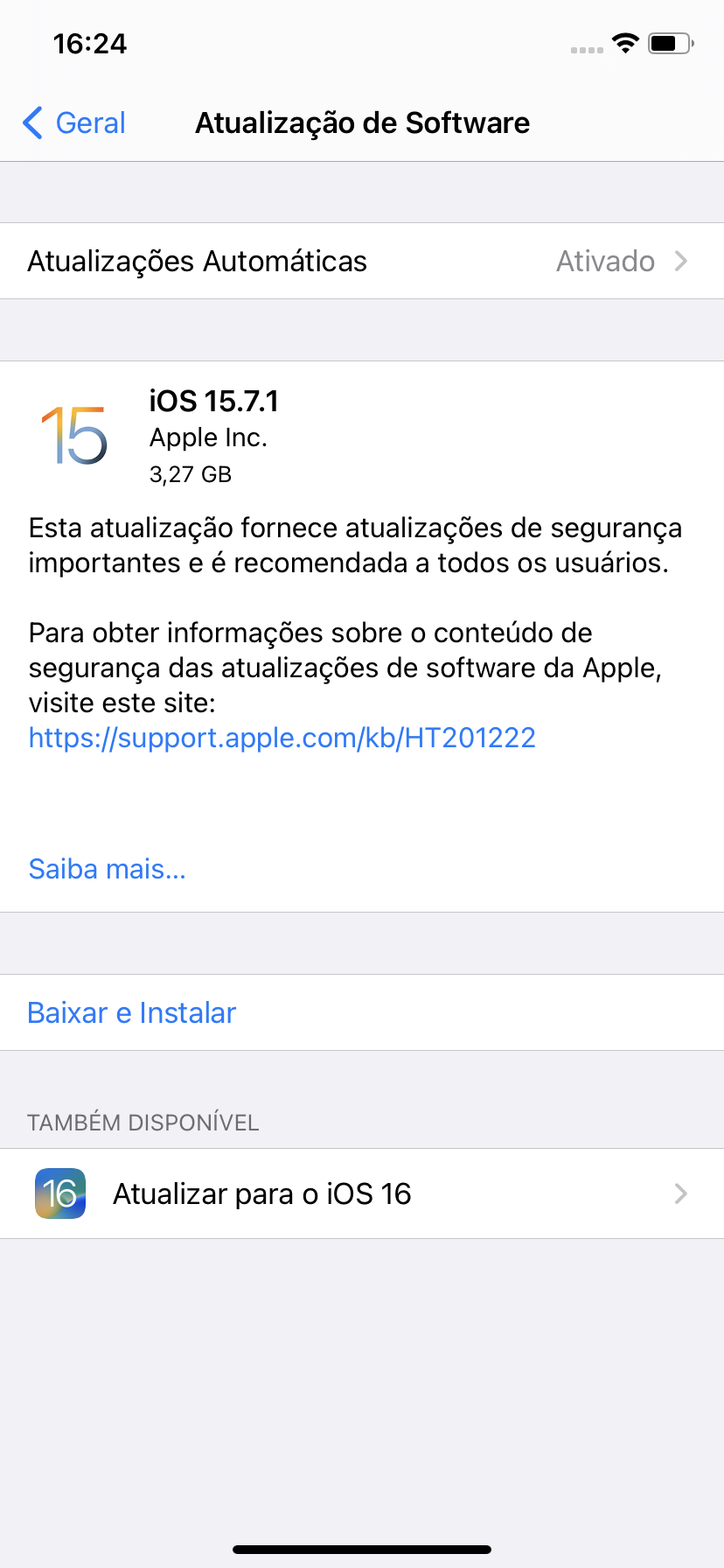 Se a opção de atualizar para um novo software, como o iOS 16 ou o iPadOS 16, não aparecer quando ele estiver disponível, pode ser que o dispositivo não seja compatível com a versão mais recente.
