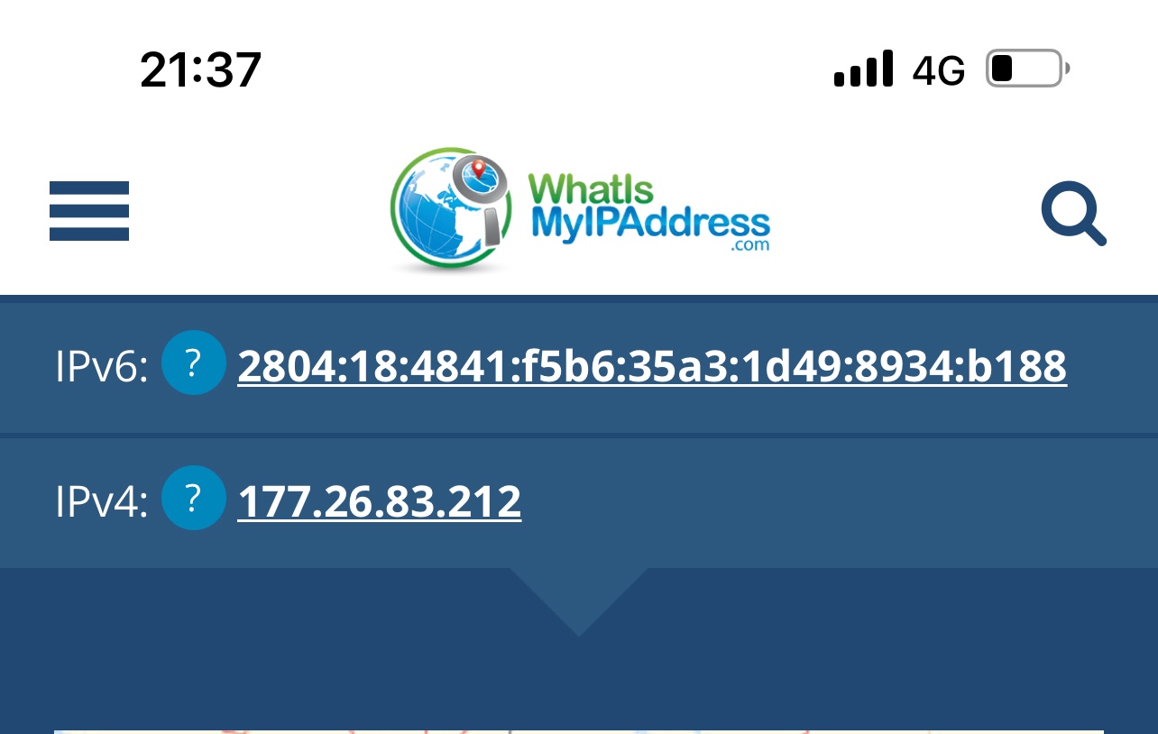 Antes que digam que é problema de minha operadora, informo que já fiz testes e a mesma me entrega IPV4 e colocando meu chip em outro celular Android o mesmo roteia com IPV4 portanto quem está bloqueando a entrega de IPV4 é o IOS.