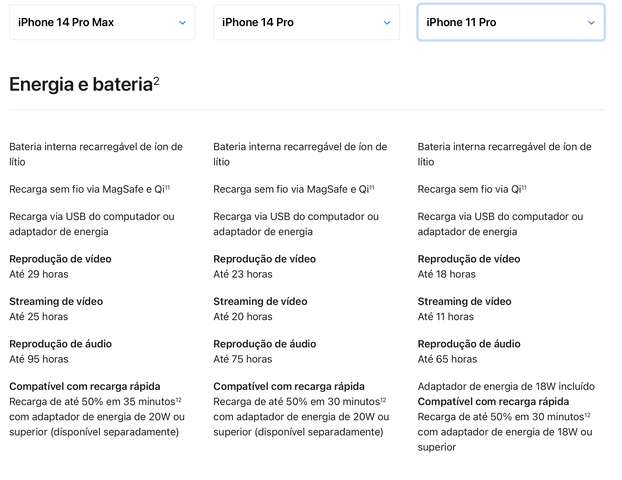 comprei meu iphone 14 pro 128 gb, novo, e tenho uma reclamação sobre a duração da bateria, tinha antes um iphone 11 pro e troquei por uma nova pelo fato da bateria ja estar ruim e meu iphone antigo durava mais que este atual (iphone 14 pro 128gb), quero uma solução *****