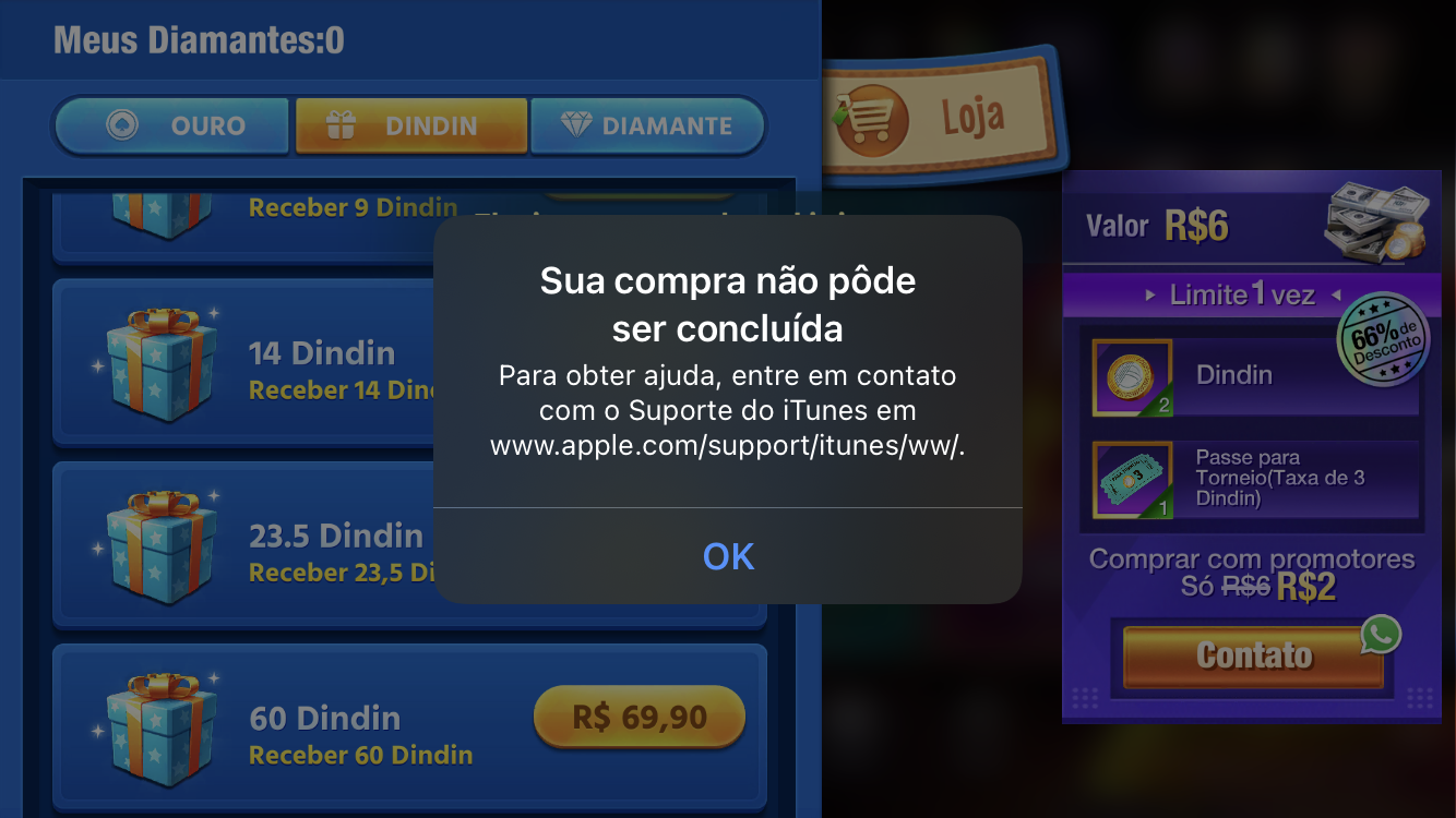 Se a forma de pagamento for recusada na App Store ou iTunes Store