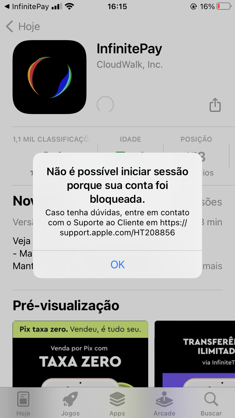 Se a conta tiver sido desativada na App Store e na iTunes Store