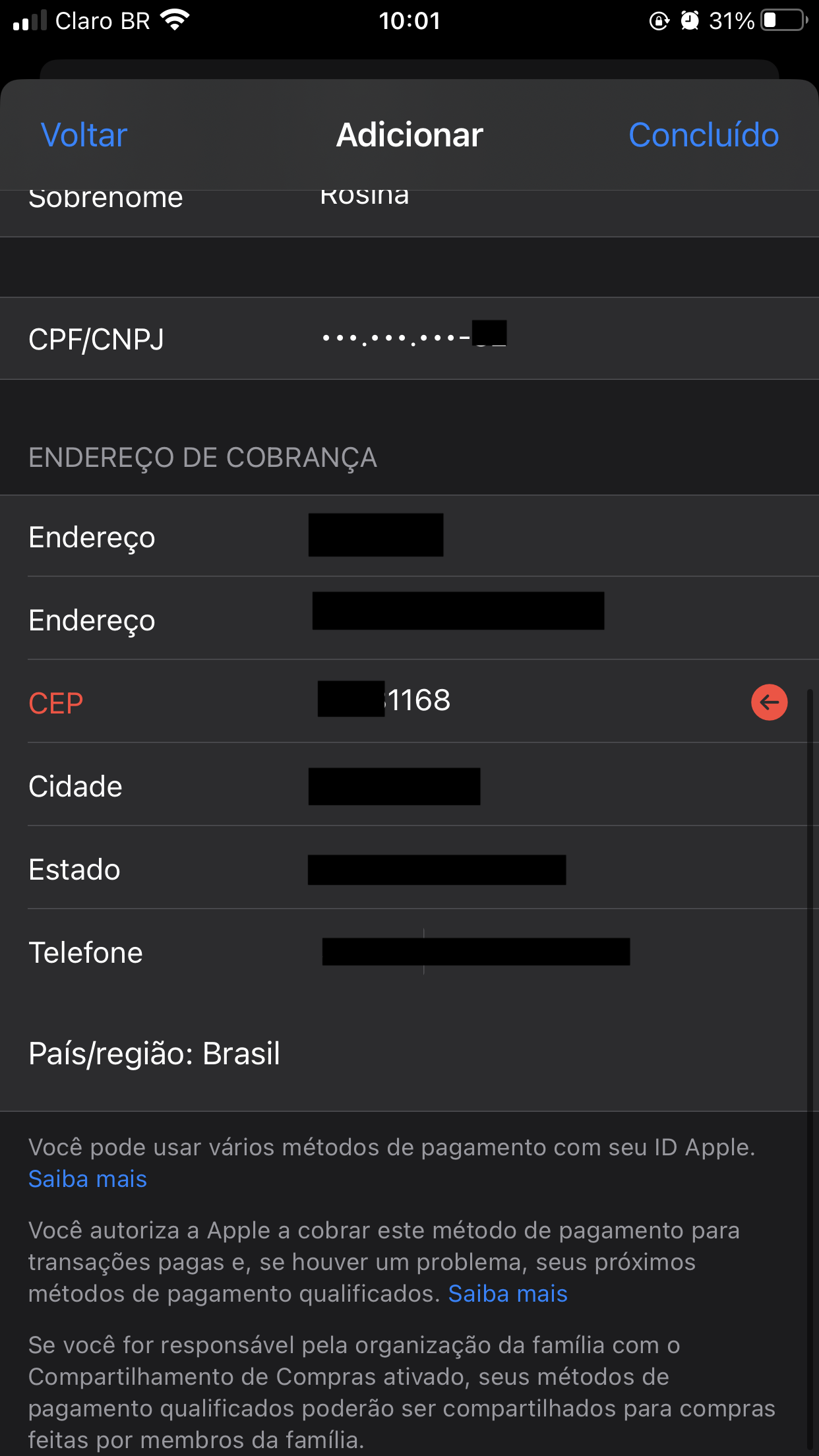 Não está aceitando o meu CEP no iPhone