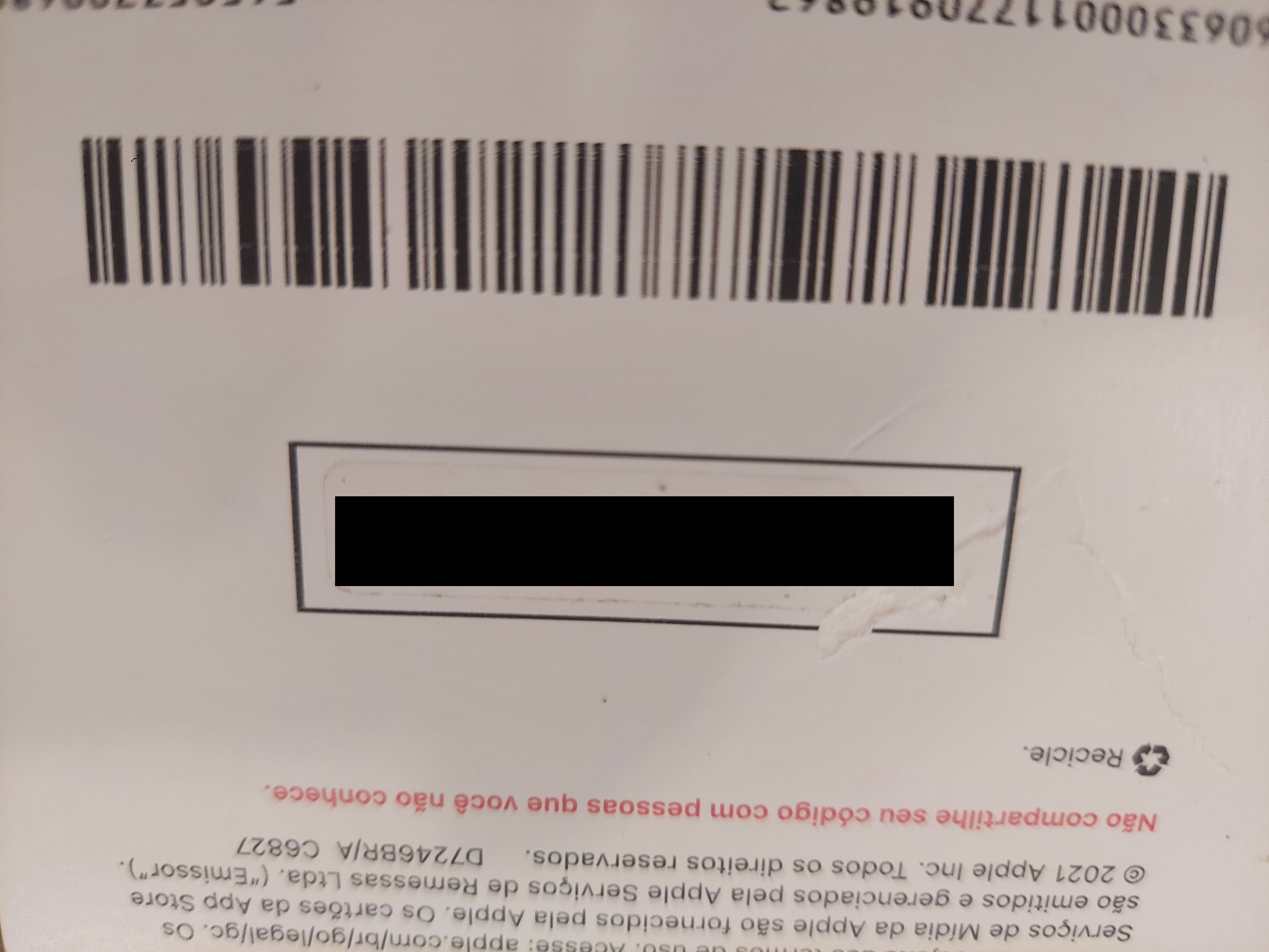 Cartão-presente da Apple rasurado