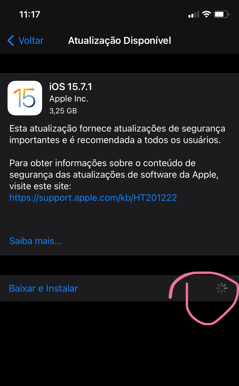 Meu celular não está fazendo a atualização. Aperto para baixar e atualizar mais ele não vai.