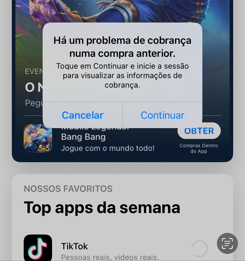 Se for exibida a mensagem "Problema na cobrança de compra anterior" ou "Verificação Necessária" - Suporte da Apple (BR)
