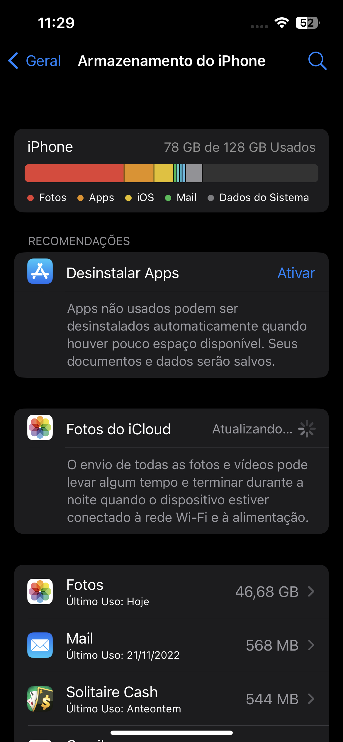 Comprei um iPhone 13 em viagem e usei para tirar todas as fotos. Deu mais de 7 mil fotos e 600 vídeos. Eu precisei assinar o plano de 200 Gb pra conseguir usar o iCloud. Porém, ele demora demais para fazer o upload das fotos e quando aparece a porcentagem e parece que vai realmente funcionar, ele aparece mensagem de “atualizando”. E eu preciso ir nos ajustes e “Retomaram a sincronização “. Vale ressaltar que ele já enviou uns 2 mil arquivos para o iCloud. A internet aqui é boa (400mb com um roteador tplink de 5 antenas).