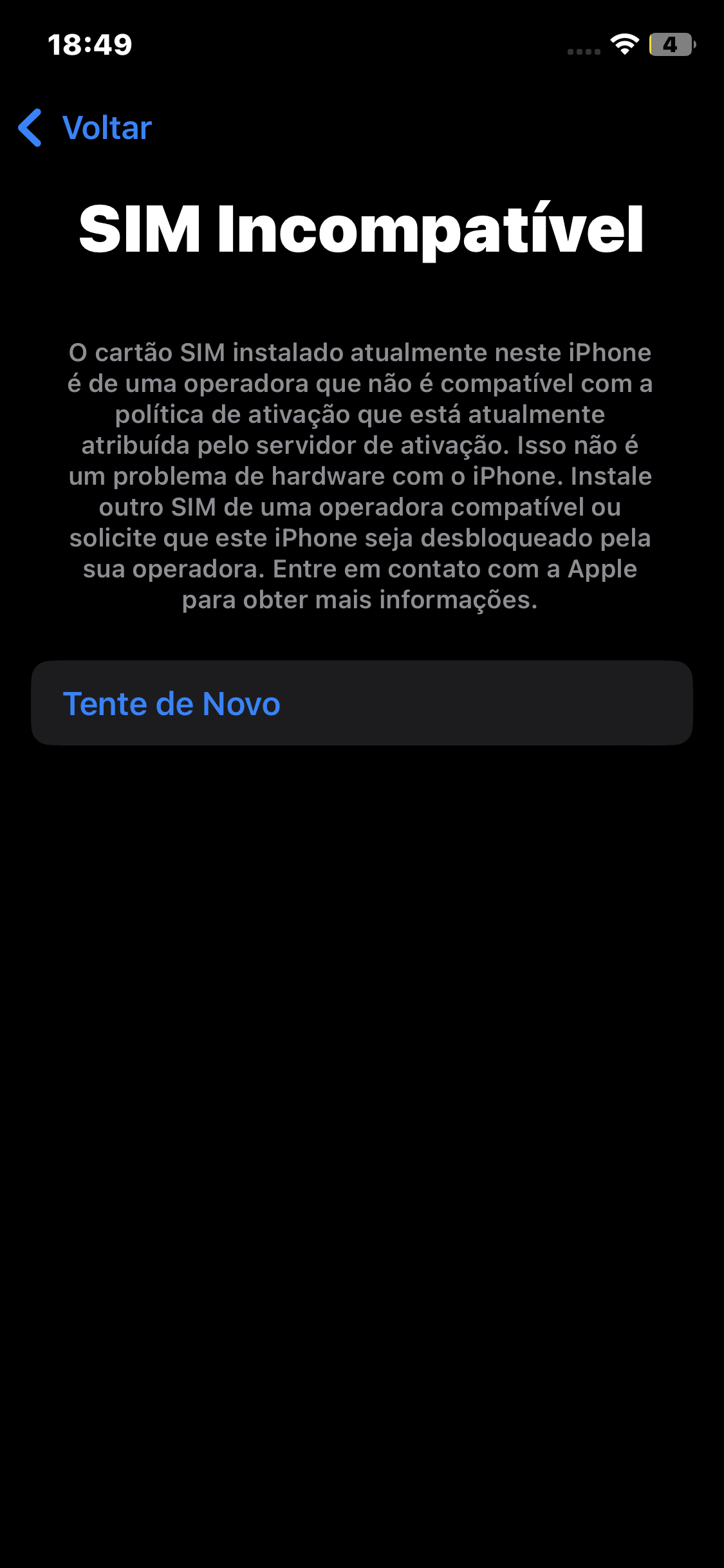 iPhone não reconhece chip do Brasil