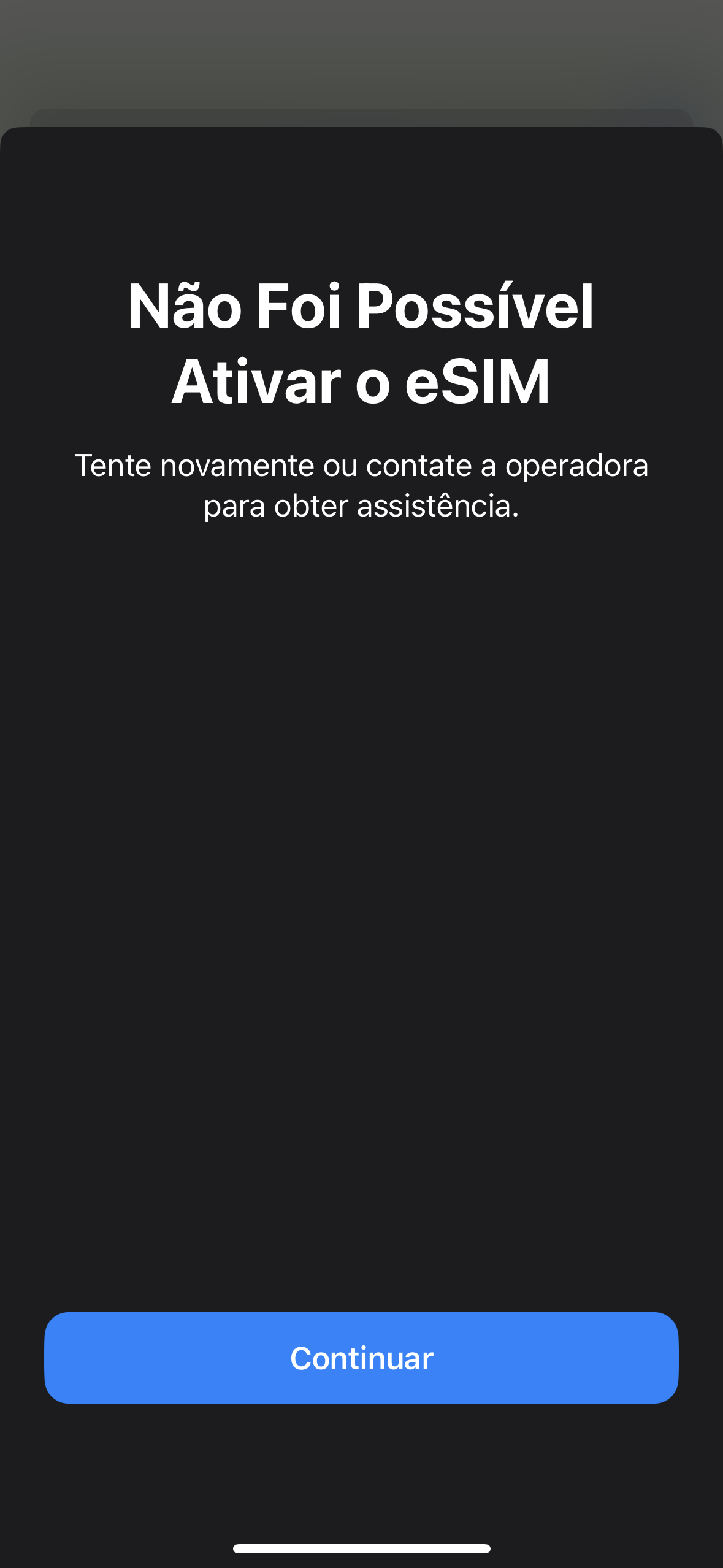 Toda vez q tento configurar o meu esim 2 essa mensagem aparece. Já tentei com 2 operadoras diferentes e o problema persiste.