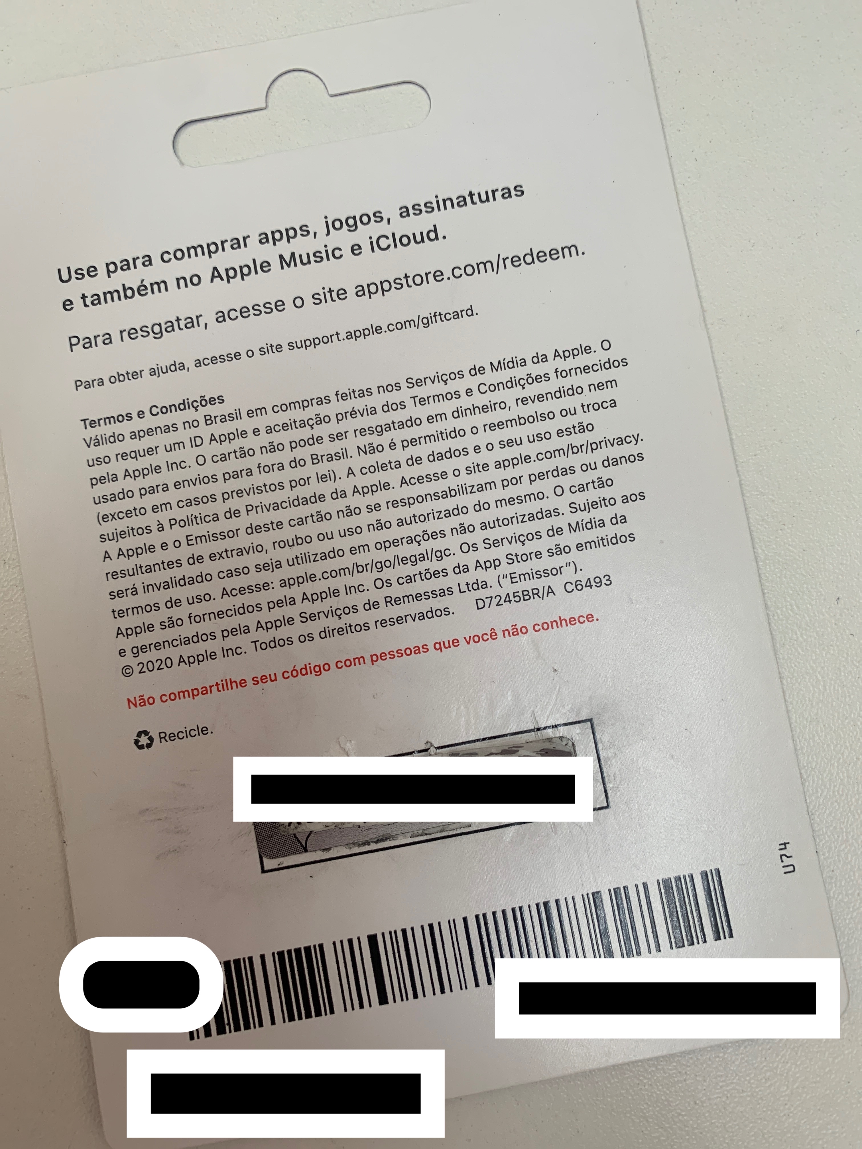 Gift card Apple ilegível