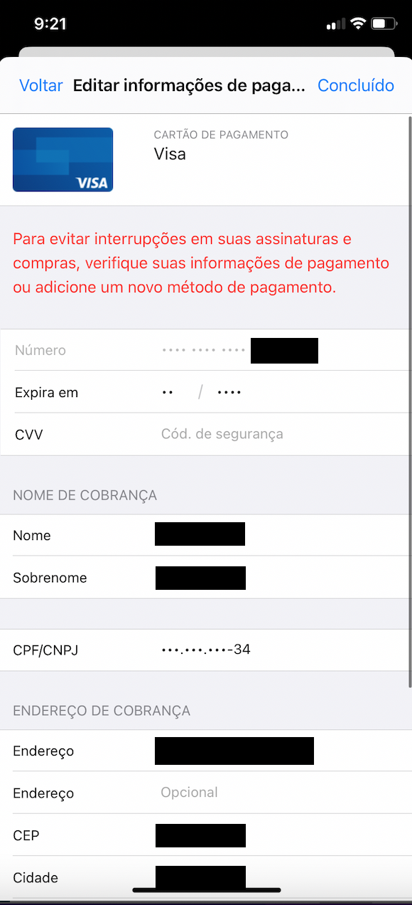 Se você ainda não conseguir remover um método de pagamento, entre em contato com o Suporte da Apple.