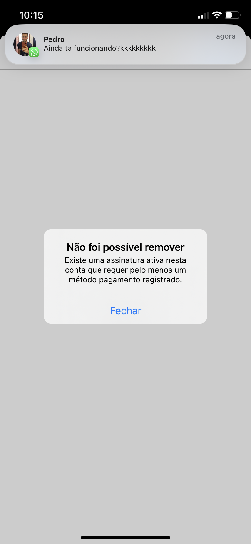 Após o pagamento do saldo, você poderá remover o método de pagamento.