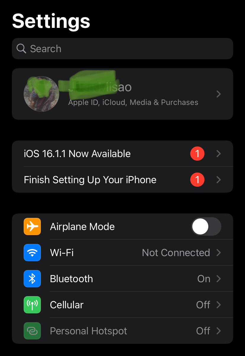 Olá, eu não estou conseguindo acessar essa parte do "Apple Id, Icloud, Media & Purchases" que fica no topo das configurações, já que está bloqueado para ninguém conseguir entrar, conforme é mostrado na imagem abaixo:
