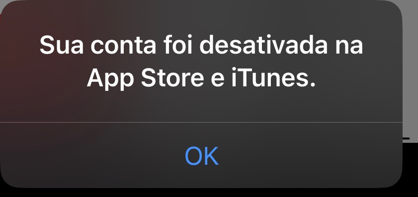 Se você vir uma mensagem informando que sua conta foi desativada na App e na iTunes Store, entre em contato com o Suporte da Apple através do telefone 0800-761-0880 ou através do site: Apple Support (Segunda a sábado das 08 as 20)
