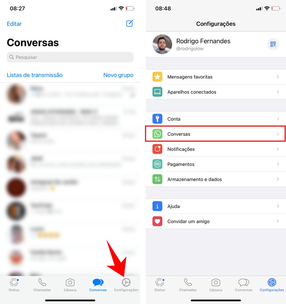 Passo 1. Abra as Configurações do WhatsApp e vá em “Conversas”;
