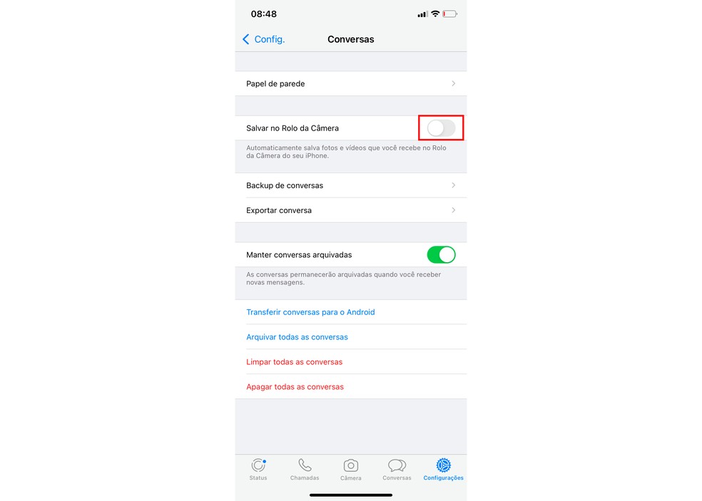 Veja como não salvar fotos do WhatsApp no rolo da câmera do iPhone — Foto: Reprodução/Rodrigo Fernandes