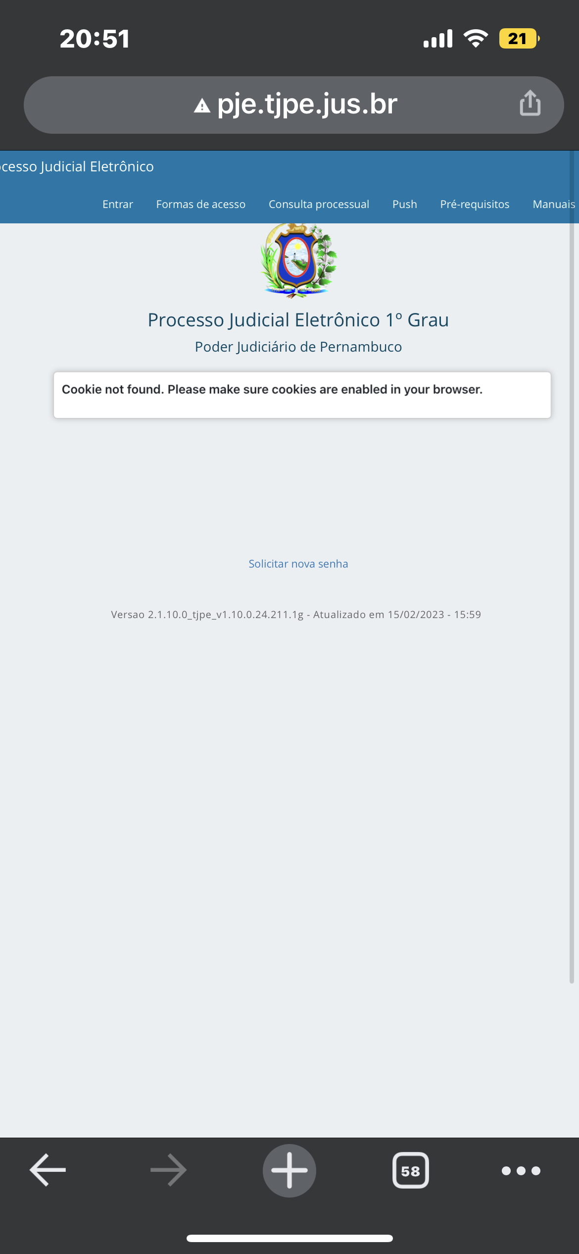 O suporte de TI do Tribunal me deu a dica de usar o Safari e deu certo.
