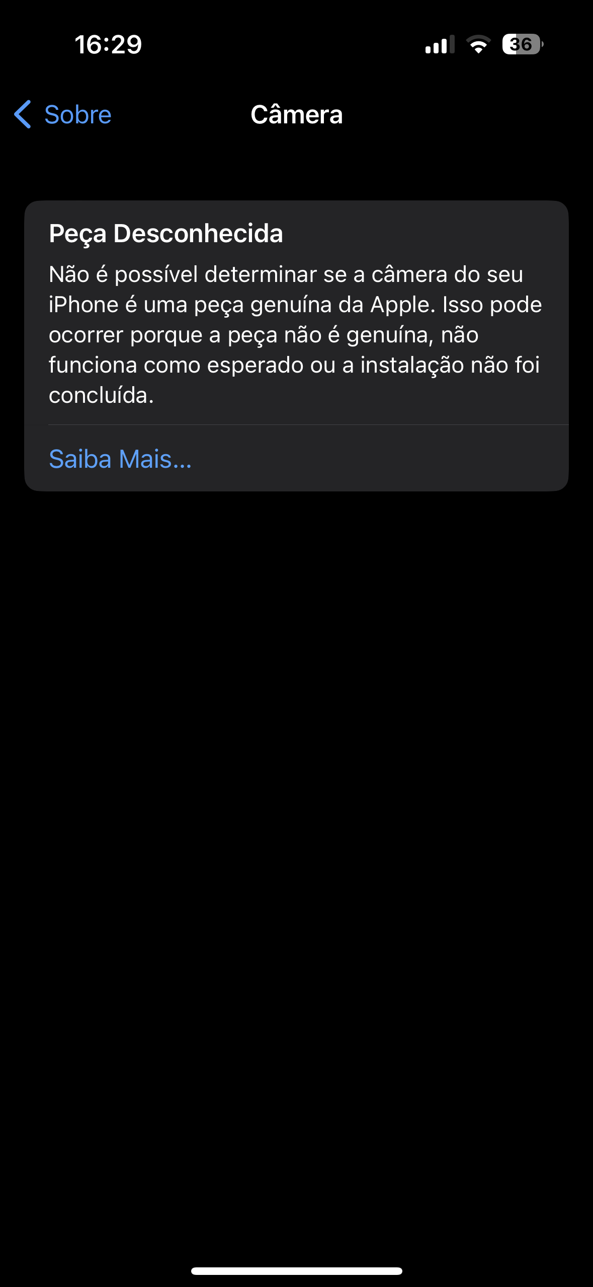 Mensagem de peça desconhecida no iPhone 14 Pro