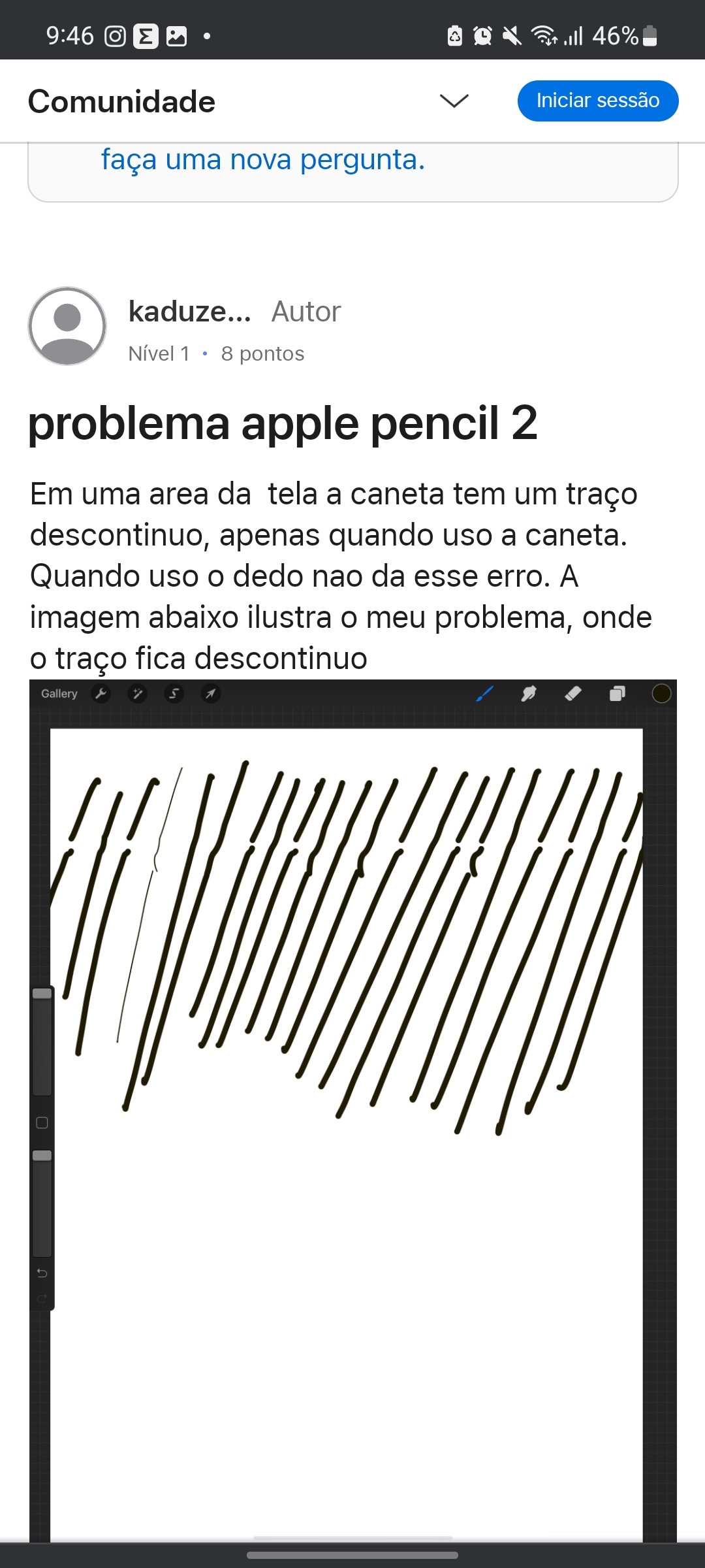 Estou tendo esse problema com a pencil da 1 geração