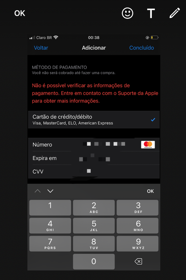 Não estou conseguindo fazer minha compra do iCloud por conta disso