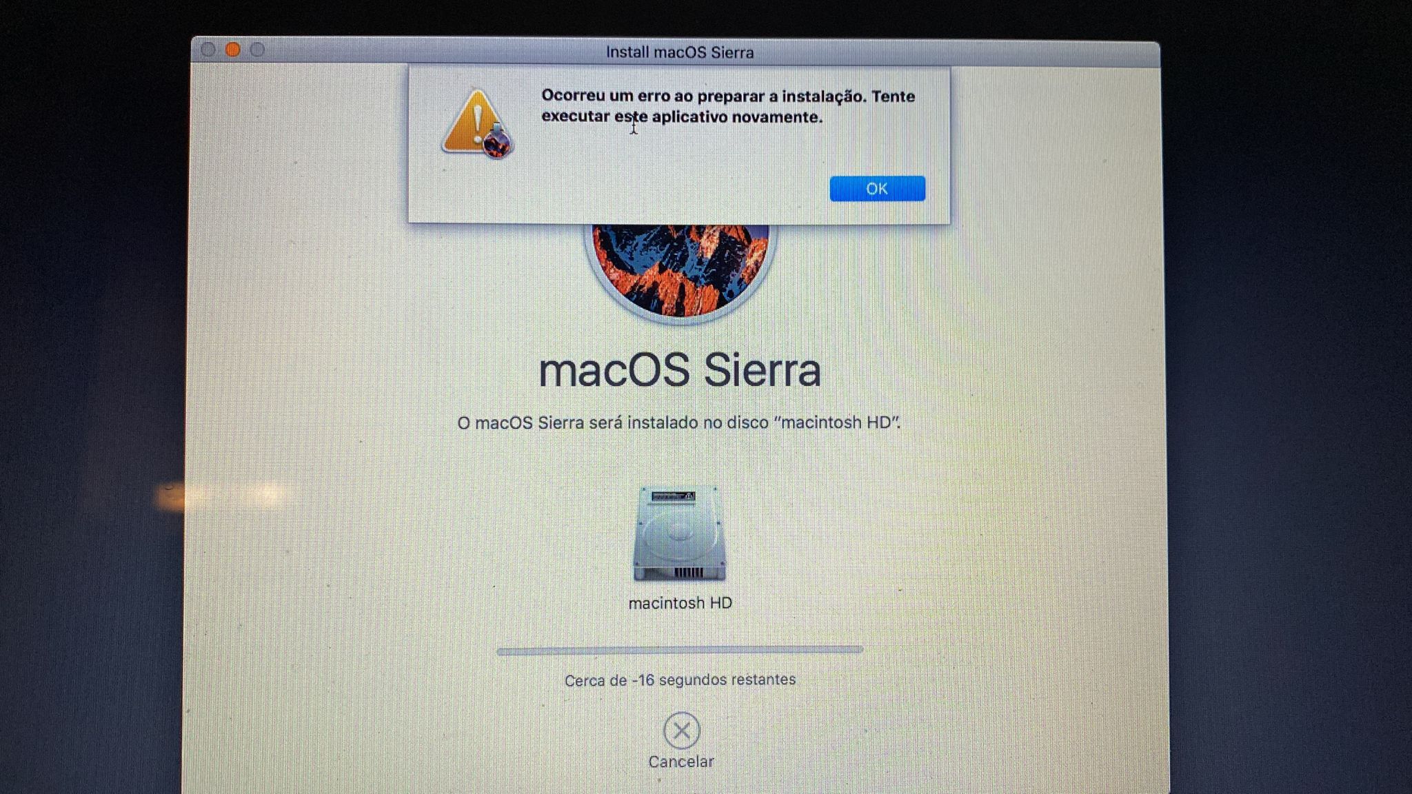 Instalação do Mac é interrompida no final