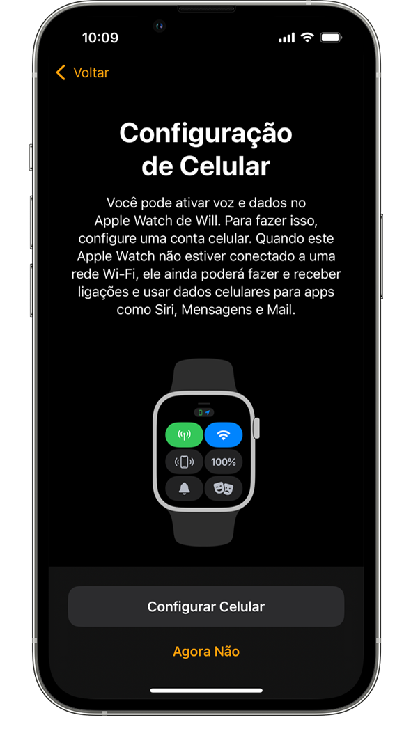 Se a operadora de celular do iPhone for compatível com a Configuração Familiar, você poderá adicionar o relógio a seu plano durante esta etapa.