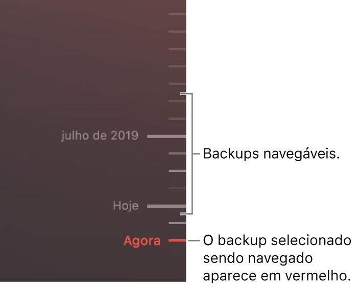 6. Use as setas e a linha do tempo para navegar pelos backups locais e externos.