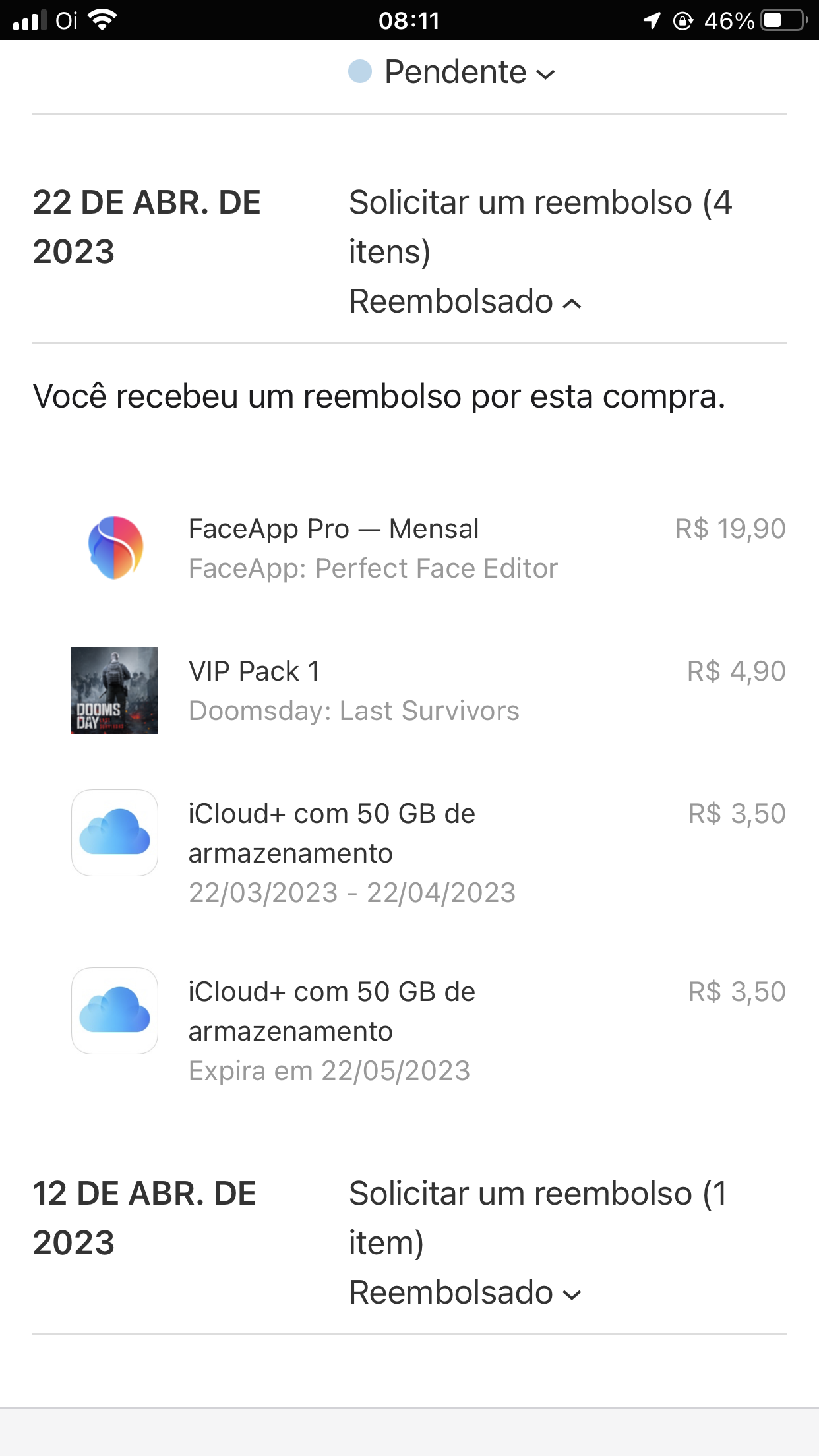 Fiz o pedido de reembolso de algumas coisas que eu vi que tinha cobrado no cartão e não era pra ter feito. Então diz que os reembolsos foram feitos, só que não caiu no meu cartão o estorno de volta. Ainda mostra que foi cobrado. Quero o reembolso