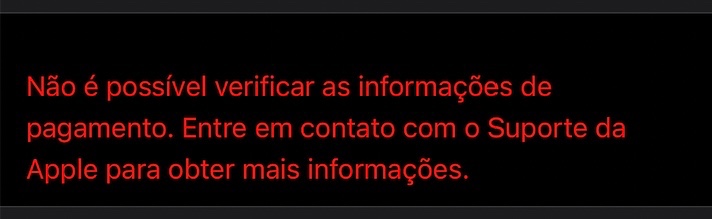 Não é possível verificar as informações de pagamento. Entre em contato com o Suporte da Apple para obter mais informações.