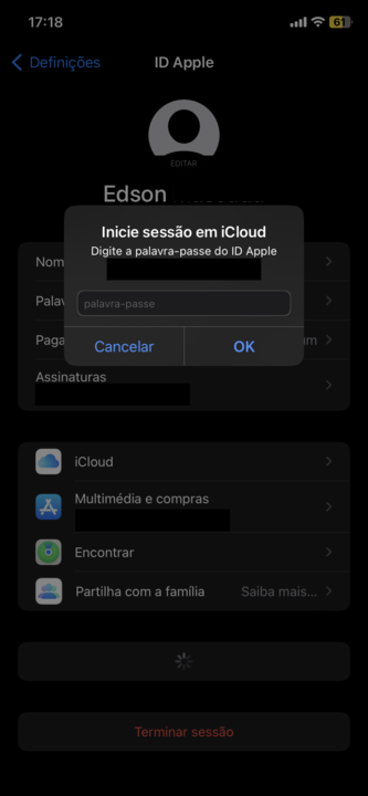 - Toque em seu nome > Senha e Segurança > Alterar Senha.