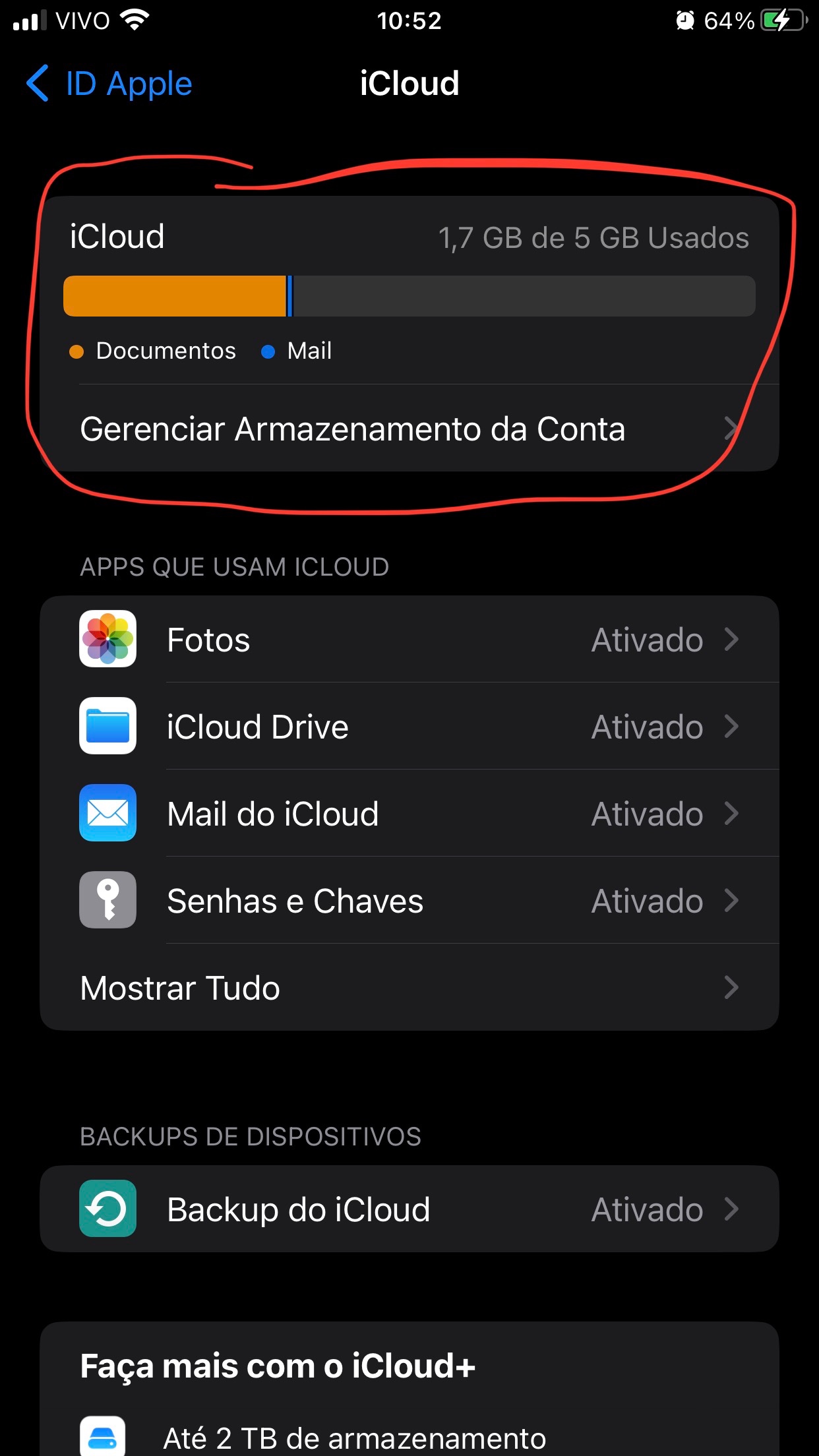 Não estou conseguindo fazer o backup do iCloud