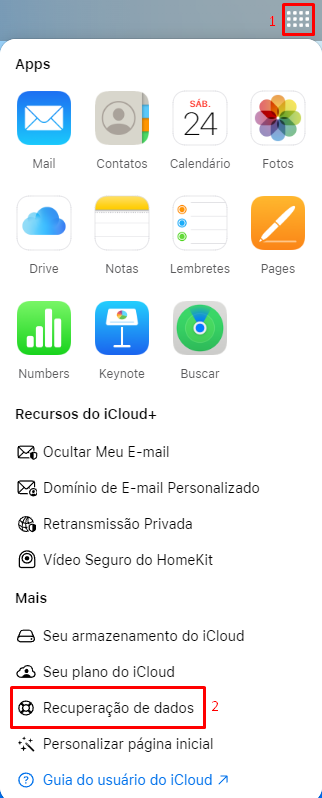 3. Acesse o site https://www.icloud.com/ logue com seu ID Apple, senha e autenticação de dois fatores.