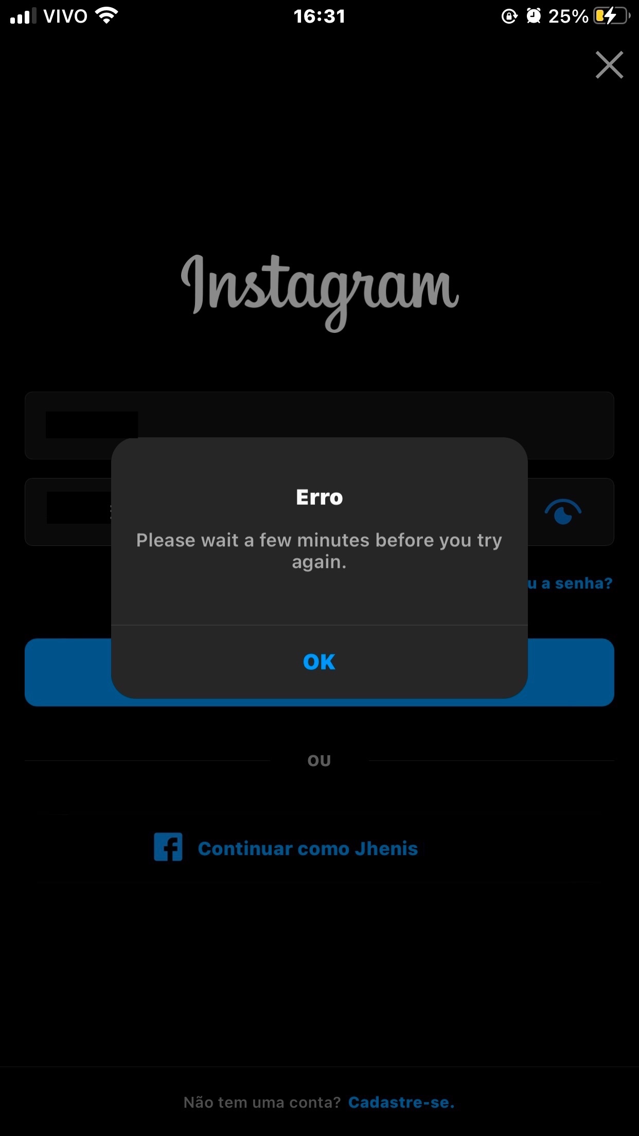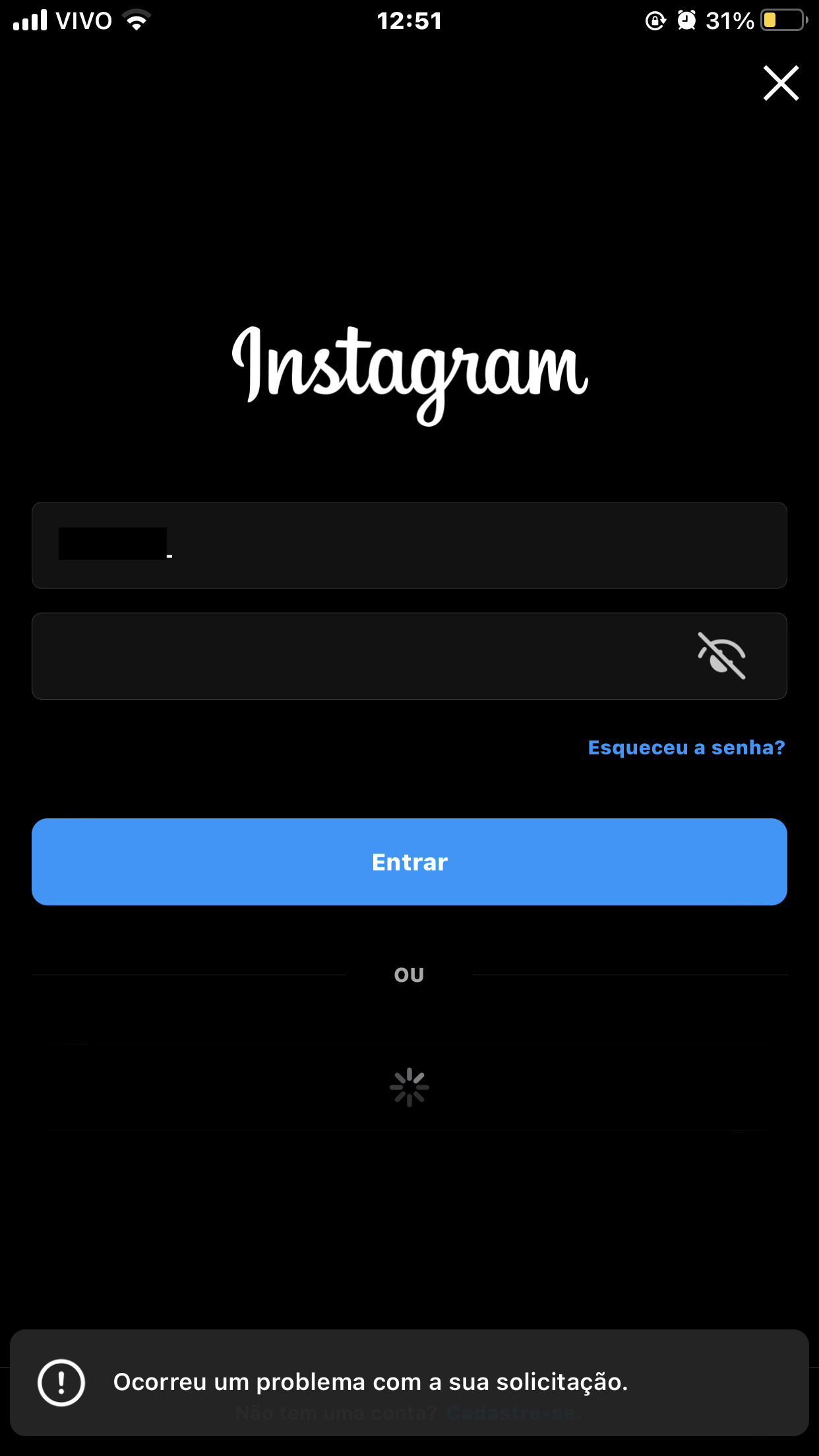 Tente redefinir todos os ajustes do iPhone para limpar tudo como de fábrica, pra que verifique se é algum problema de algum ajustes do seu iPhone que o Instagram está rejeitando, para redefinir os ajustes siga ajustes > geral > transferir ou redefinir > redefinir > redefinir todo o conteúdo e ajustes Retorne os ajustes do iPhone aos padrões - Suporte da Apple (BR)