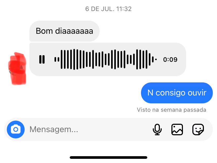 Áudio que recebo no insta não reproduz. Eu consigo mandar áudio e consigo reproduzir mas todos que recebo não reproduzem, fica parado.