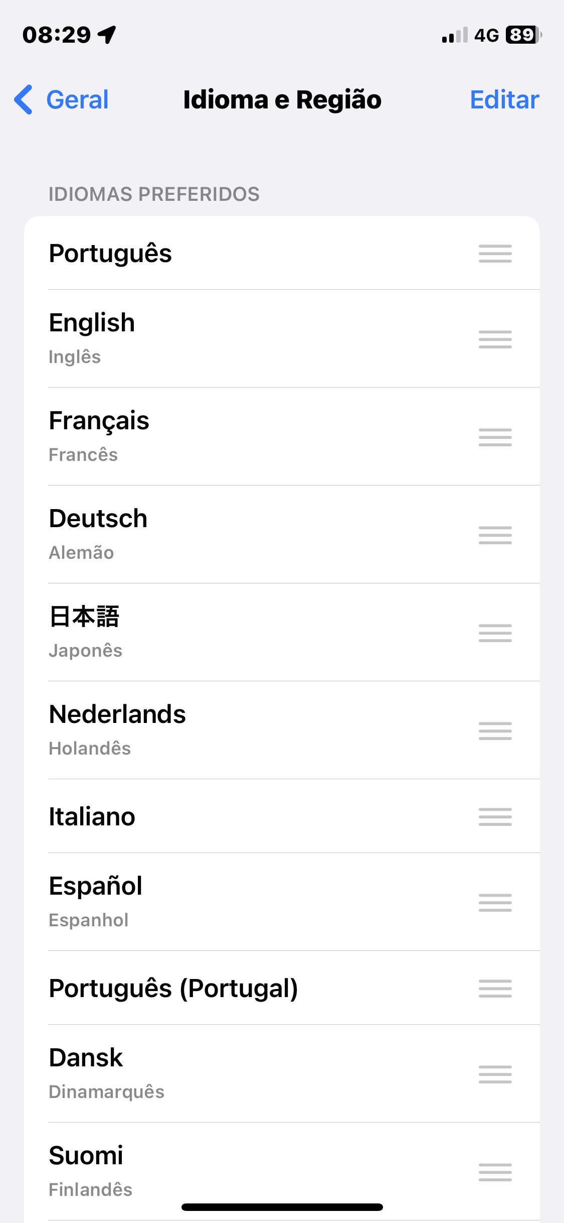 iPhone 11 Pro no iOS 16.6 não está mudando idioma