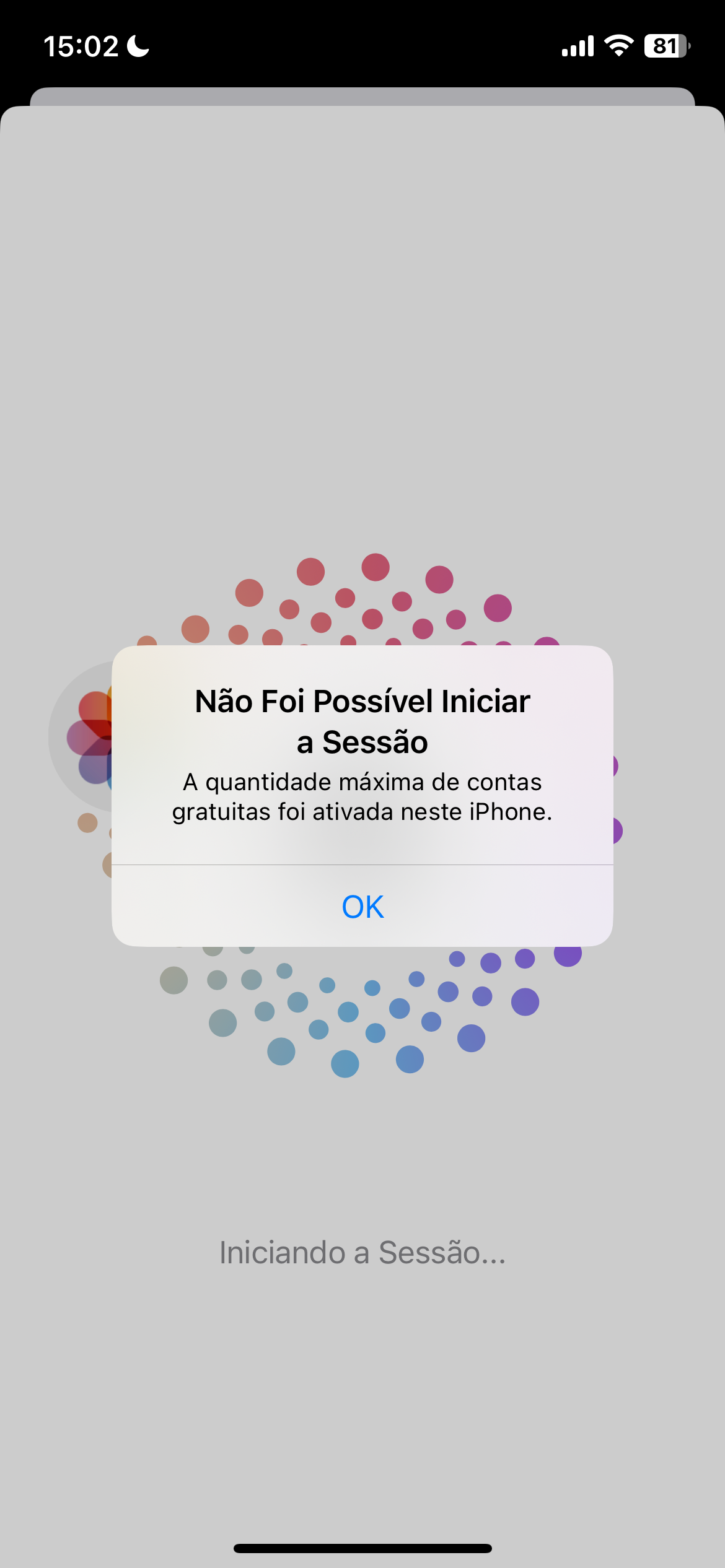 Quantidade máxima de contas gratuitas foi ativada neste iPhone