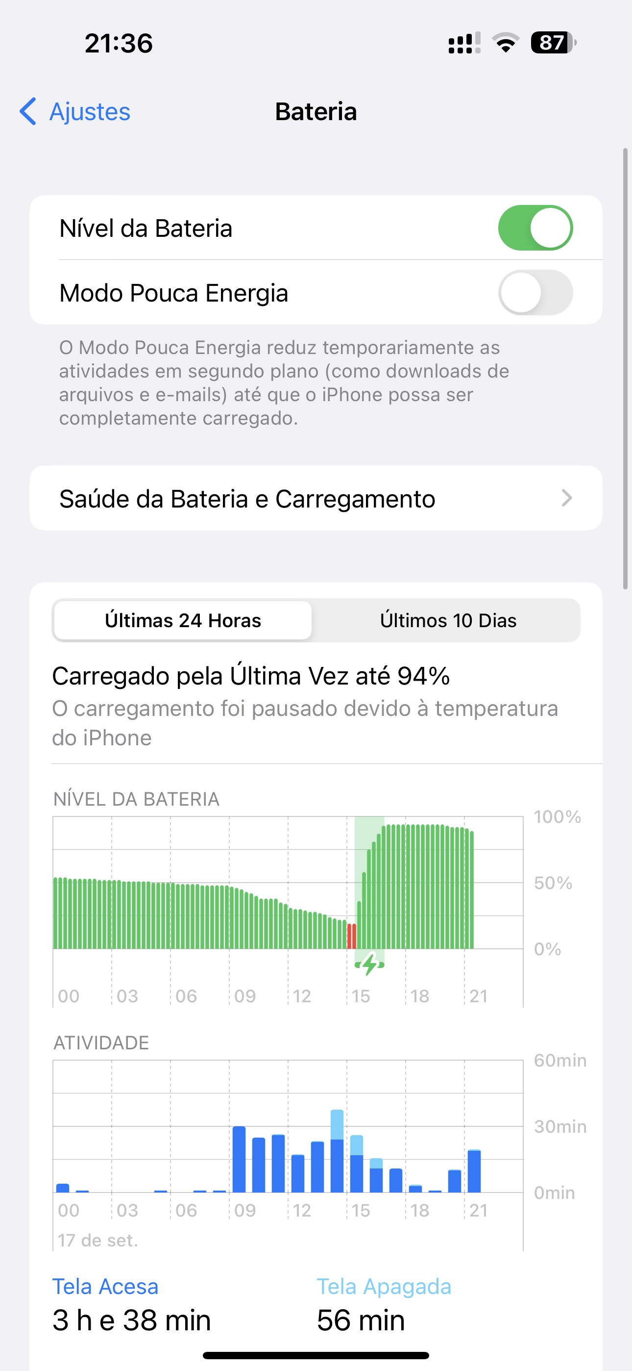 Toda vez que coloco pra carregar e ele chega a uns 80 % bem nas configurações da bateria aparece “ O carregamento foi pausado devido a temperatura do iPhone “.